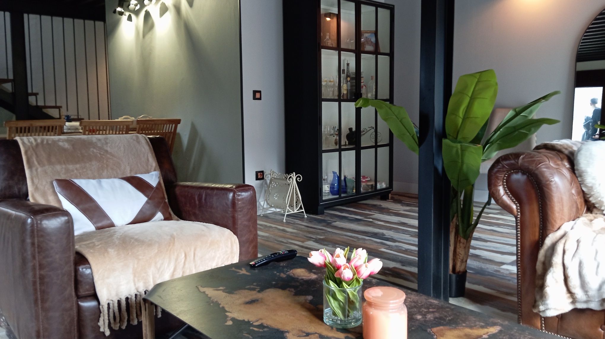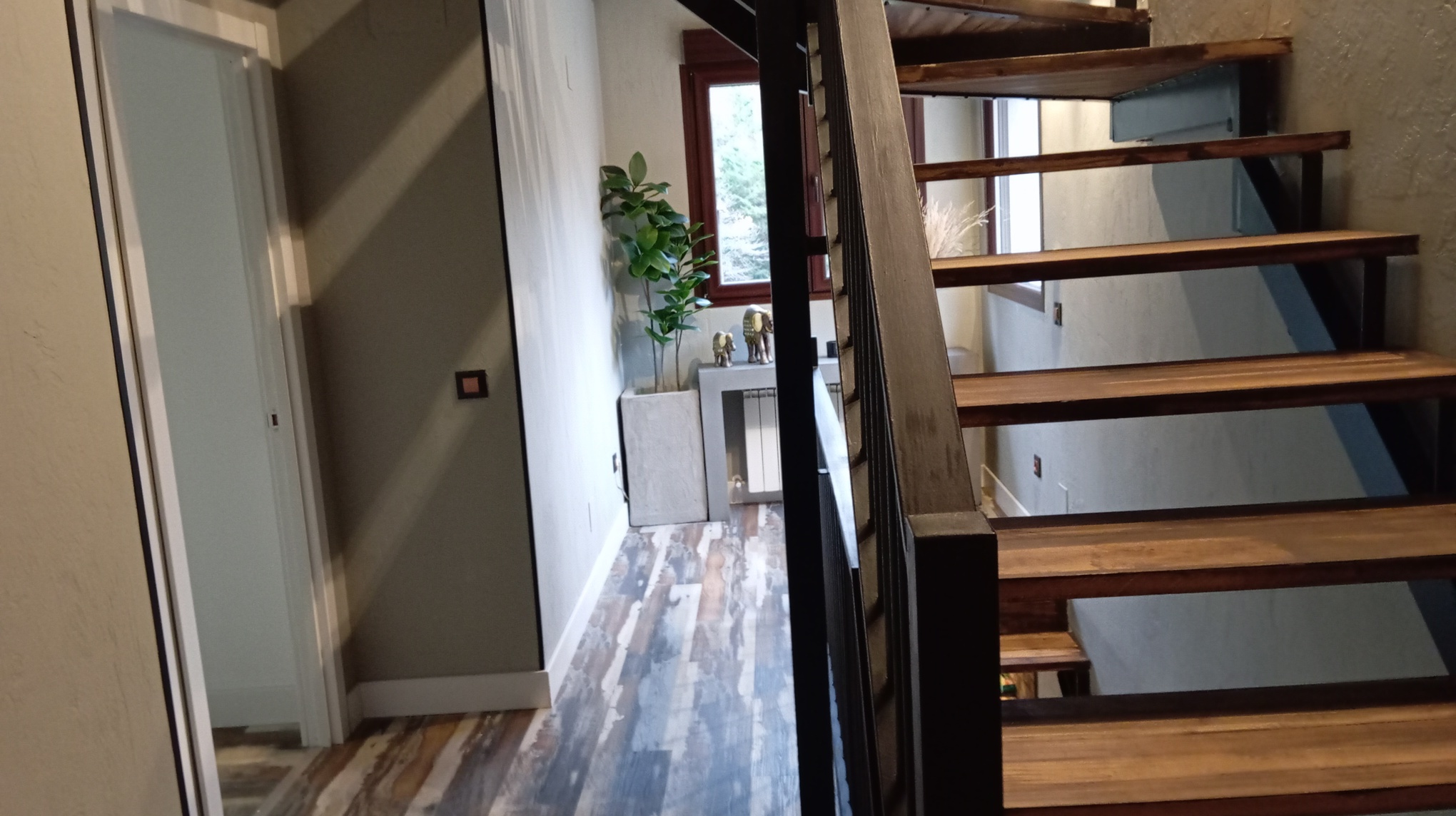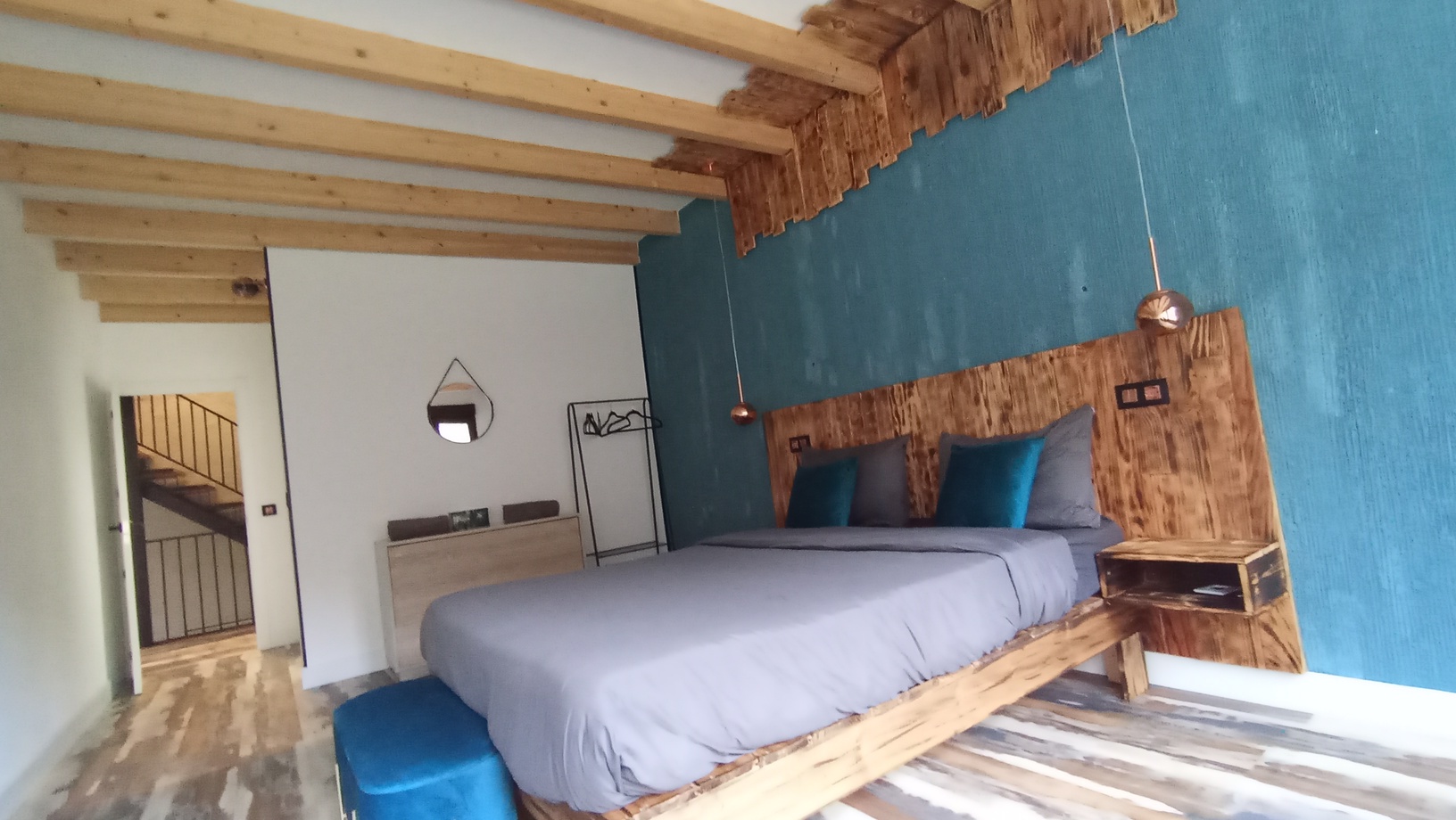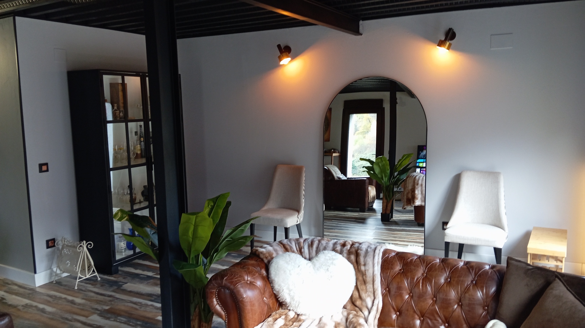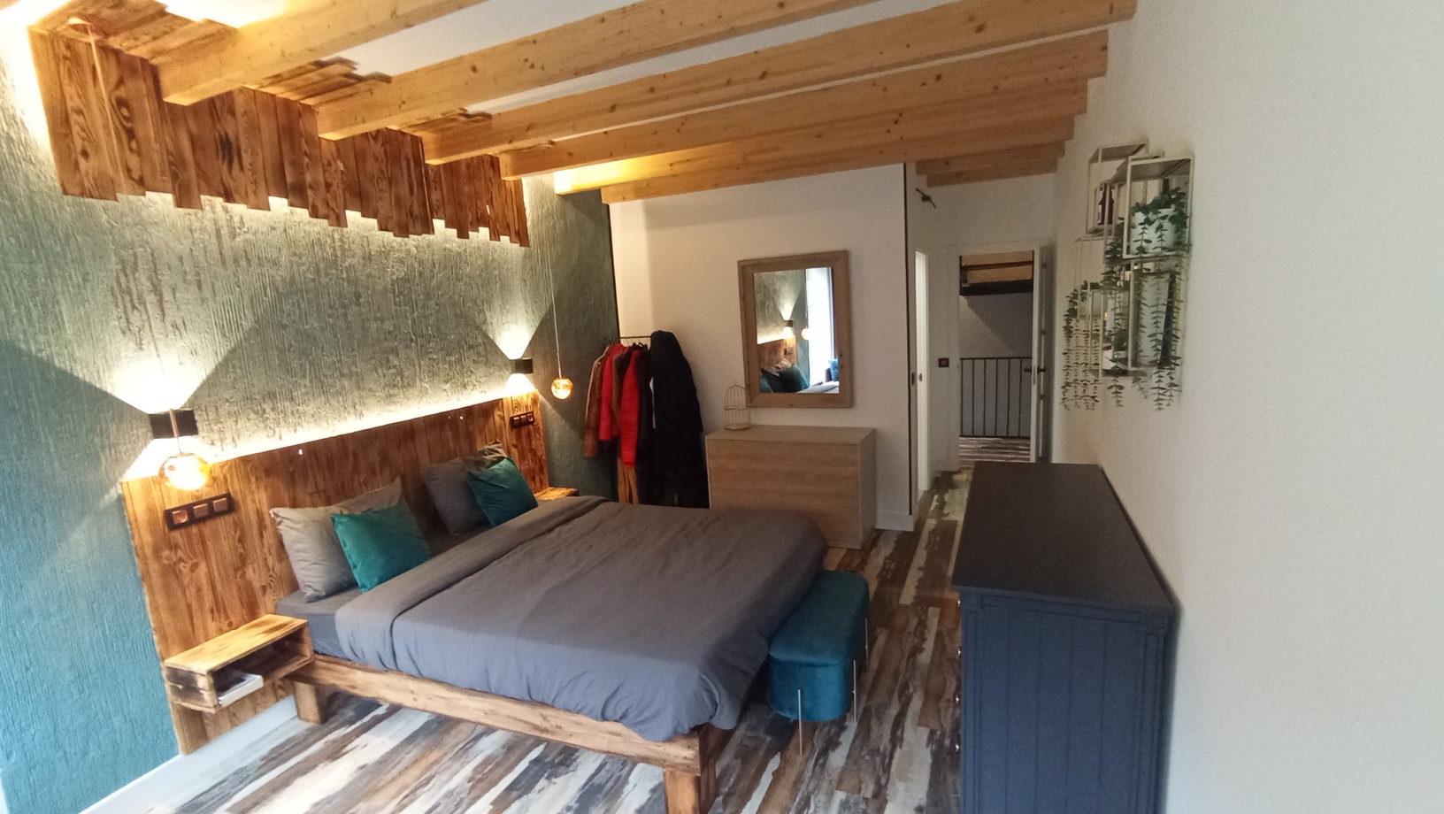 Esta casa cuenta también, con un bajo cubierta o buhardilla, (35m2) totalmente reformada y funcional con calefacción de gasoil, salón con cocina americana, baño completo, y un dormitorio en altillo, area de lavandería, revestida en madera maciza y puerta de metal para espacios de almacenamiento o habitación, hecho a mano al estilo industrial vintage, con entrada independiente.